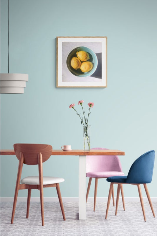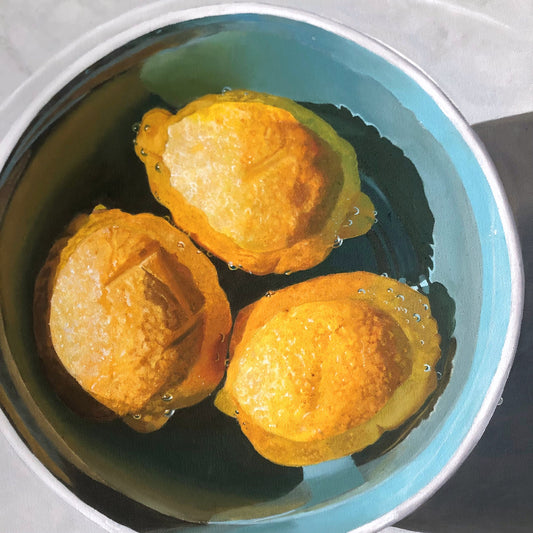 "Lemons in a Blue Bowl" Original Artwork. Oil on Canvas: 20"x20"